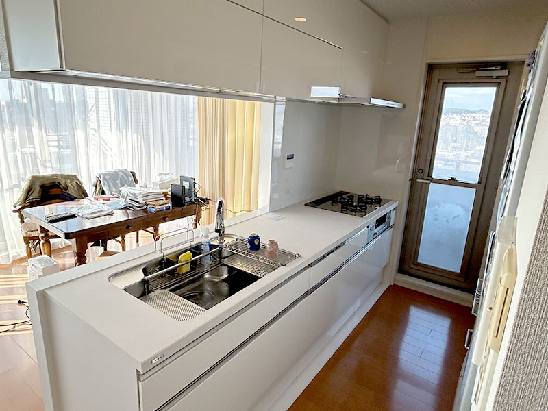 さらに、キッチンの吊り戸は2つともオートダウンウォールなので、吊り戸の有効活用が可能です。