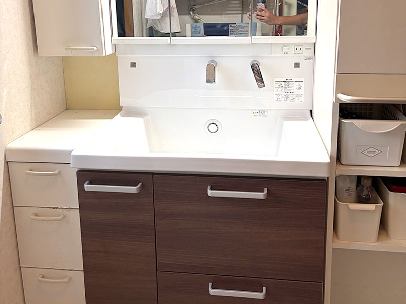 既設の収納棚を活かした、使いやすい洗面化粧台